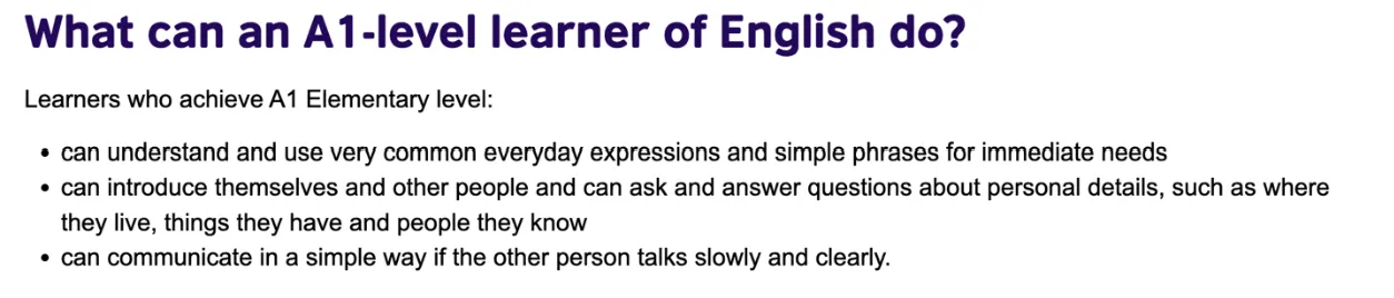 How difficult is this? You can see the required aptitude of an A1 learner here: